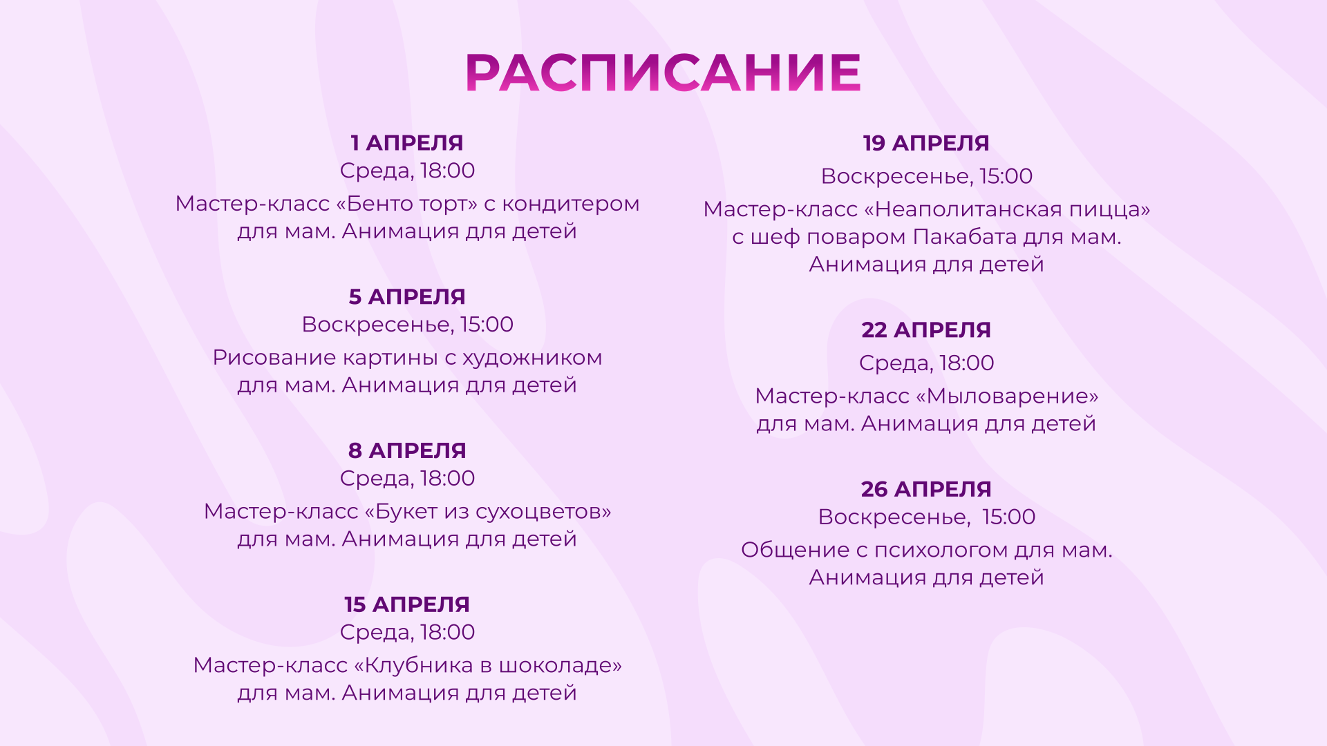 С апреля, каждую неделю мы с вами будем собираться и приобретать новый навык, пока дети играют с нашими аниматорами. Это будет только ваше время.
